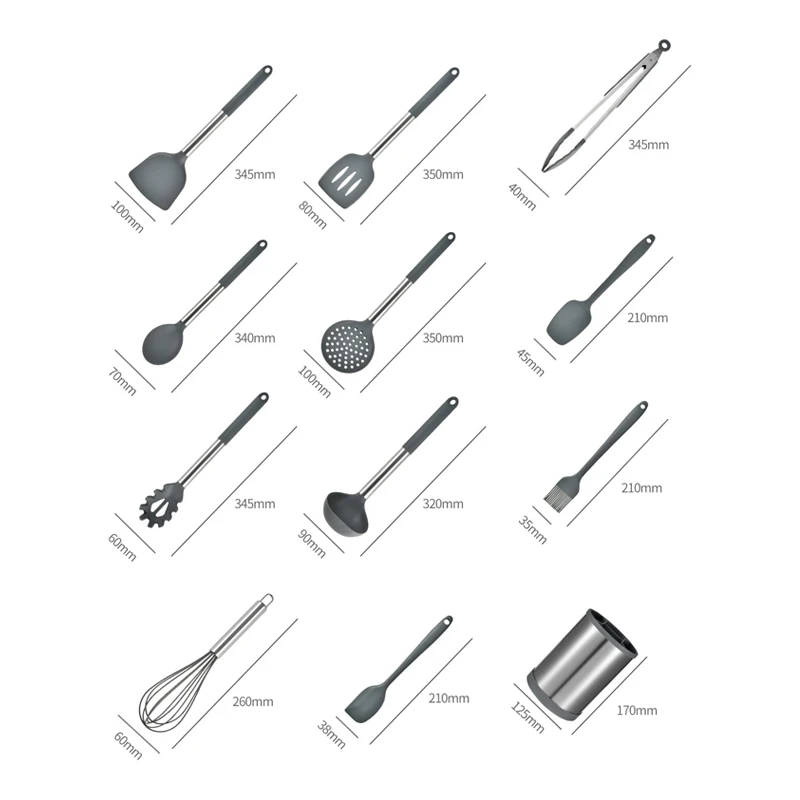 This 12-piece silicone kitchen utensil set comes with a convenient 360° rotating base for easy storage and access. Made from non-toxic, heat-resistant silicone, the set includes a variety of essential tools such as spatulas, spoons, scrapers, brushes, and turners. Perfect for cooking and baking, these utensils are durable, easy to clean, and designed to protect non-stick cookware.