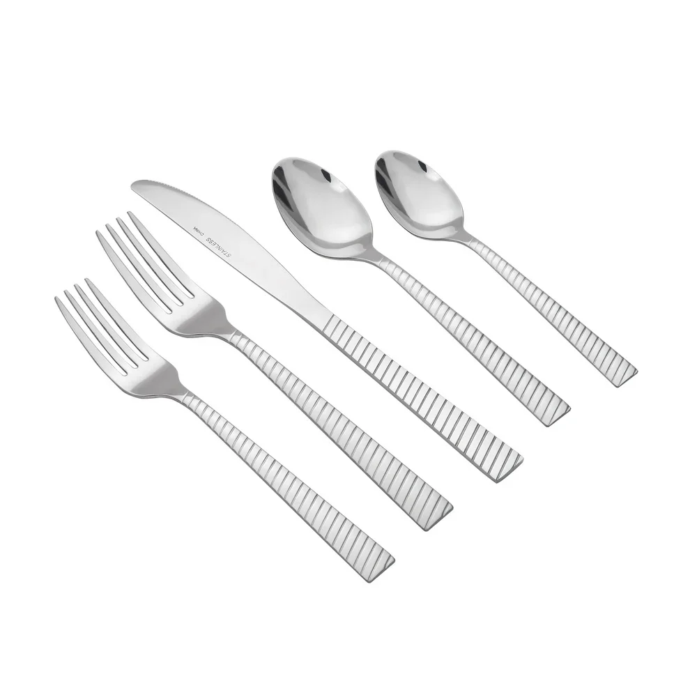 20-piece stainless steel flatware set includes knives, forks, and spoons for service for 4. Made from durable, rust-resistant stainless steel with ergonomic handles for comfortable use. Perfect for everyday dining, family meals, or outdoor activities like camping and picnics. Dishwasher safe for easy cleaning and long-lasting shine.