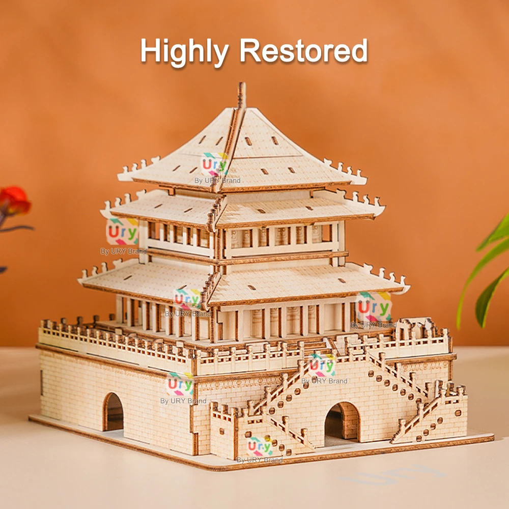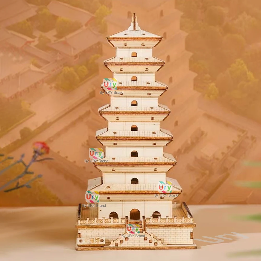 Experience the beauty of traditional Chinese architecture with the Ury 3D Wooden Puzzle of the Bell Tower and Giant Wild Goose Pagoda. This DIY model kit offers an engaging assembly experience for adults and doubles as a striking desktop decoration or collectible. Perfect for puzzle enthusiasts and lovers of intricate craftsmanship.
