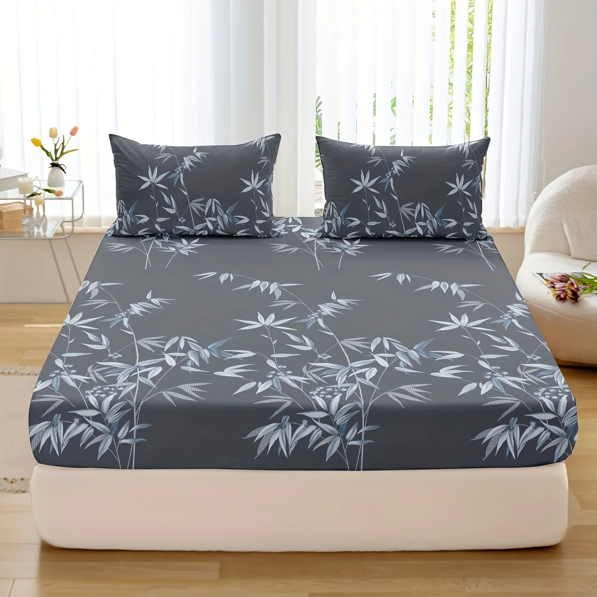 Bring a touch of nature-inspired elegance to your bedroom with this 3pcs Bamboo Leaf Fitted Sheet Set. Featuring a beautiful bamboo leaf print, this bedding set combines comfort, breathability, and style in one perfect package. The set includes one fitted sheet and two matching pillowcases, designed for a snug fit and coordinated look. Made from soft, durable microfiber fabric, it’s gentle on the skin and perfect for year-round use. The breathable material promotes airflow, helping you stay cool and comfortable through the night. Hypoallergenic and resistant to dust mites, it’s ideal for sensitive skin and allergy sufferers. The deep-pocket fitted sheet stays securely in place, even on thick mattresses. Its wrinkle- and fade-resistant properties make maintenance effortless, keeping your bed looking fresh and inviting. Perfect for bedrooms, guest rooms, or dorms, this stylish sheet set adds a cozy and natural touch to any space. Sleep comfortably and wake refreshed with this charming bamboo leaf bedding set.