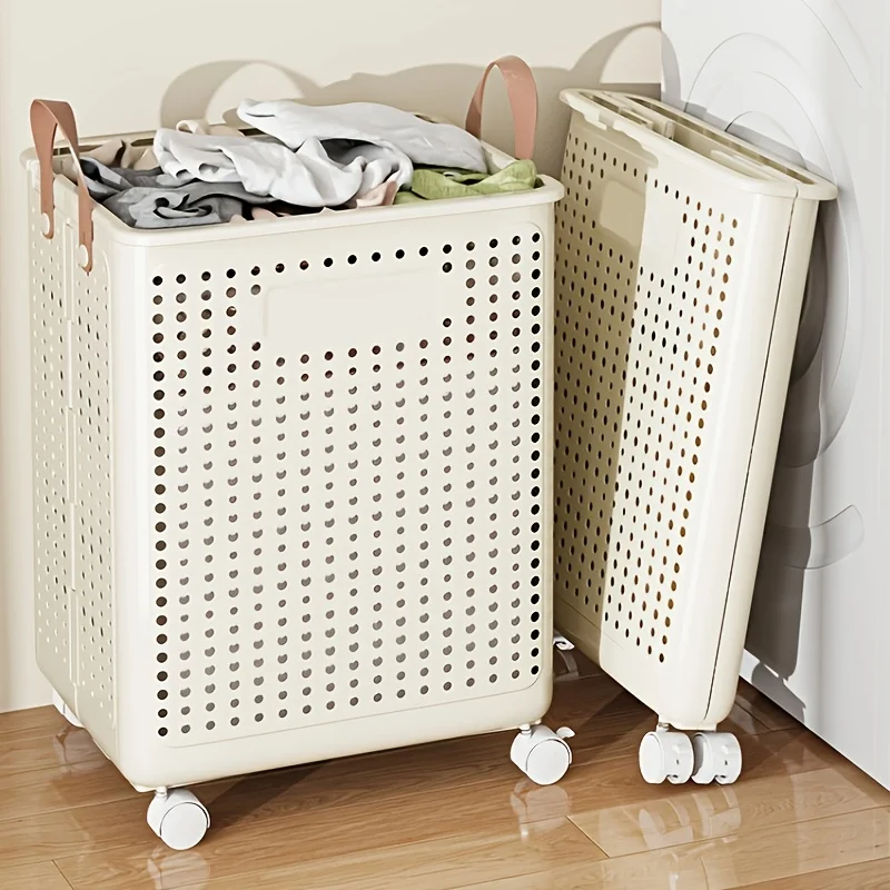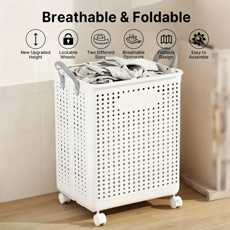 Durable and lightweight, this foldable laundry basket features a hollow design for easy ventilation. Equipped with sturdy rubber handles, it’s perfect for storing and carrying clothes, toys, or other household items. Ideal for home organization and space-saving storage.