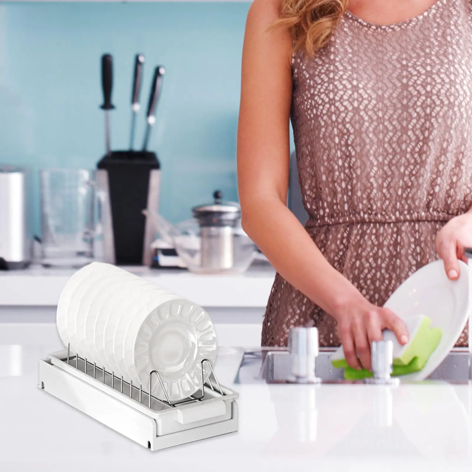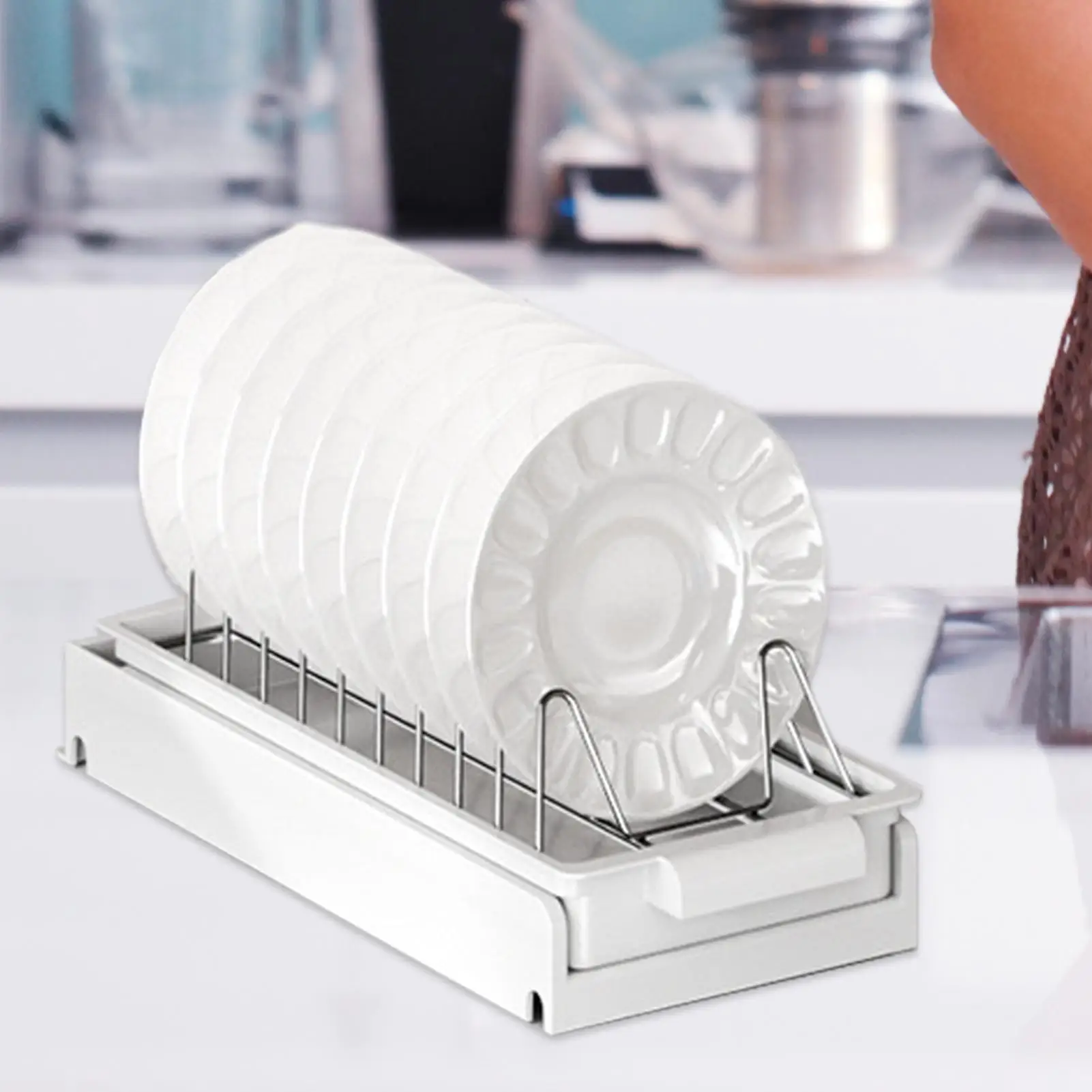 Simplify dish storage with this Pull-Out Sliding Dish Rack designed for large-capacity plate organization. The smooth sliding design provides easy access while keeping plates neatly stored and properly drained. Ideal for homeowners, busy families, RV owners, offices, and college spaces, this space-saving dish drainer fits perfectly inside cabinets or tight areas. Durable and practical, it helps keep kitchens organized and dishes ready to use.
