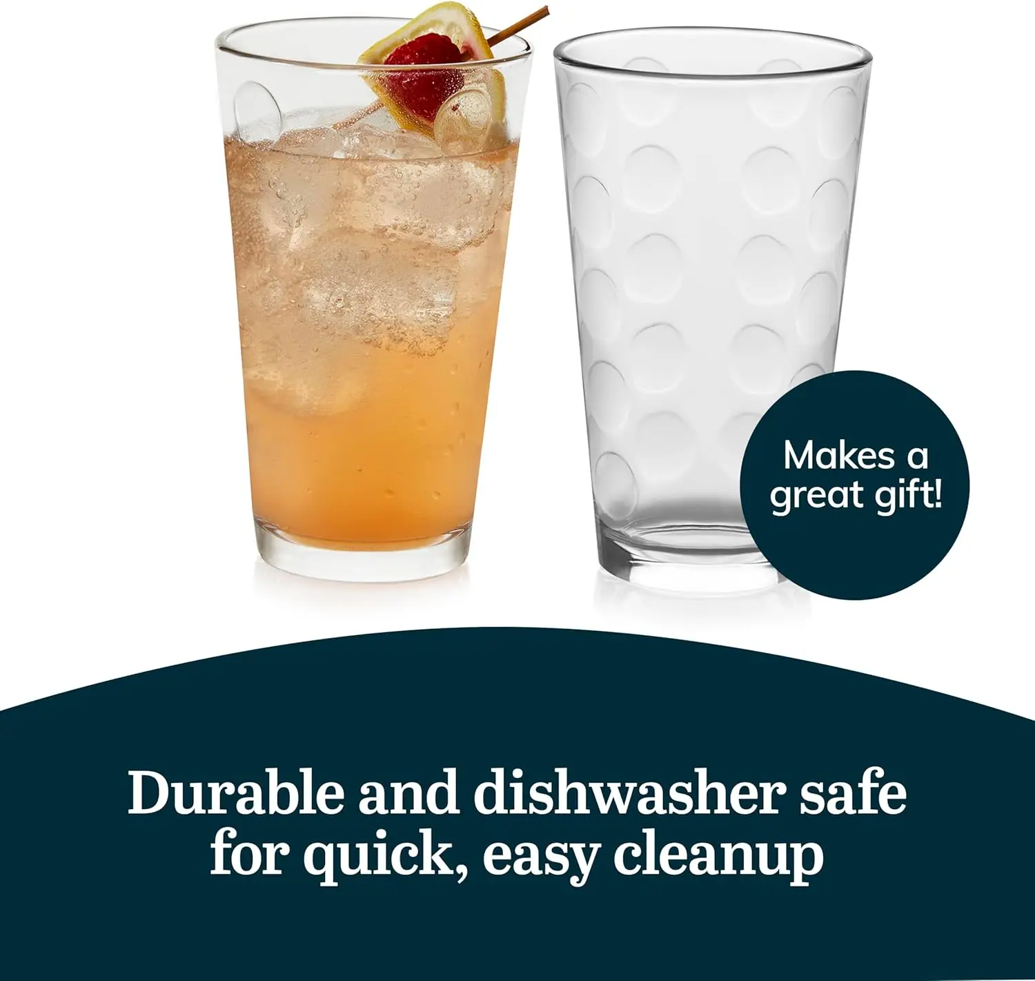 Serve your favorite beverages in style with this set of 8 Reno patterned 16-ounce tumbler glasses. Crafted with a durable design and elegant patterns, these glasses are perfect for everyday use or entertaining guests. Ideal for water, juice, cocktails, or any cold drink, they combine practicality with a touch of sophistication.