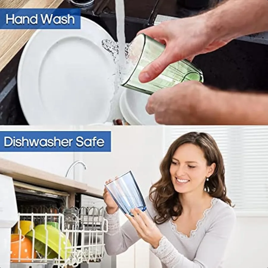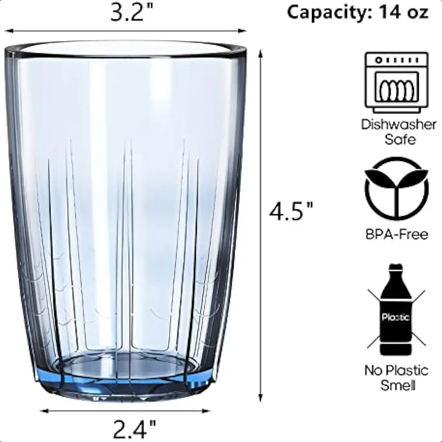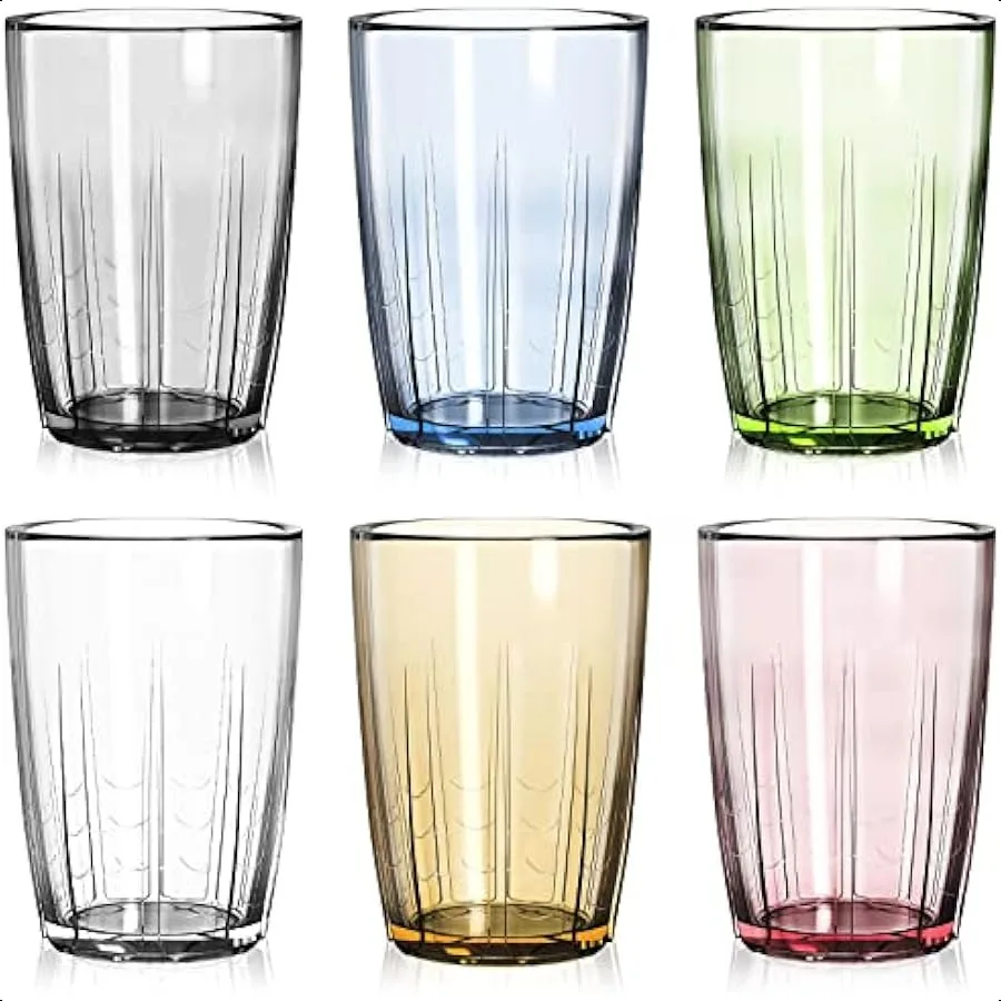 Set of 6 unbreakable acrylic drinking cups, perfect for water, juice, or any beverage. Each 14oz tumbler is made from durable, BPA-free acrylic that’s lightweight, reusable, and dishwasher safe. Stackable design saves space in cabinets, while the clear finish mimics glass without the risk of breaking. Ideal for everyday use, outdoor dining, parties, or family gatherings.