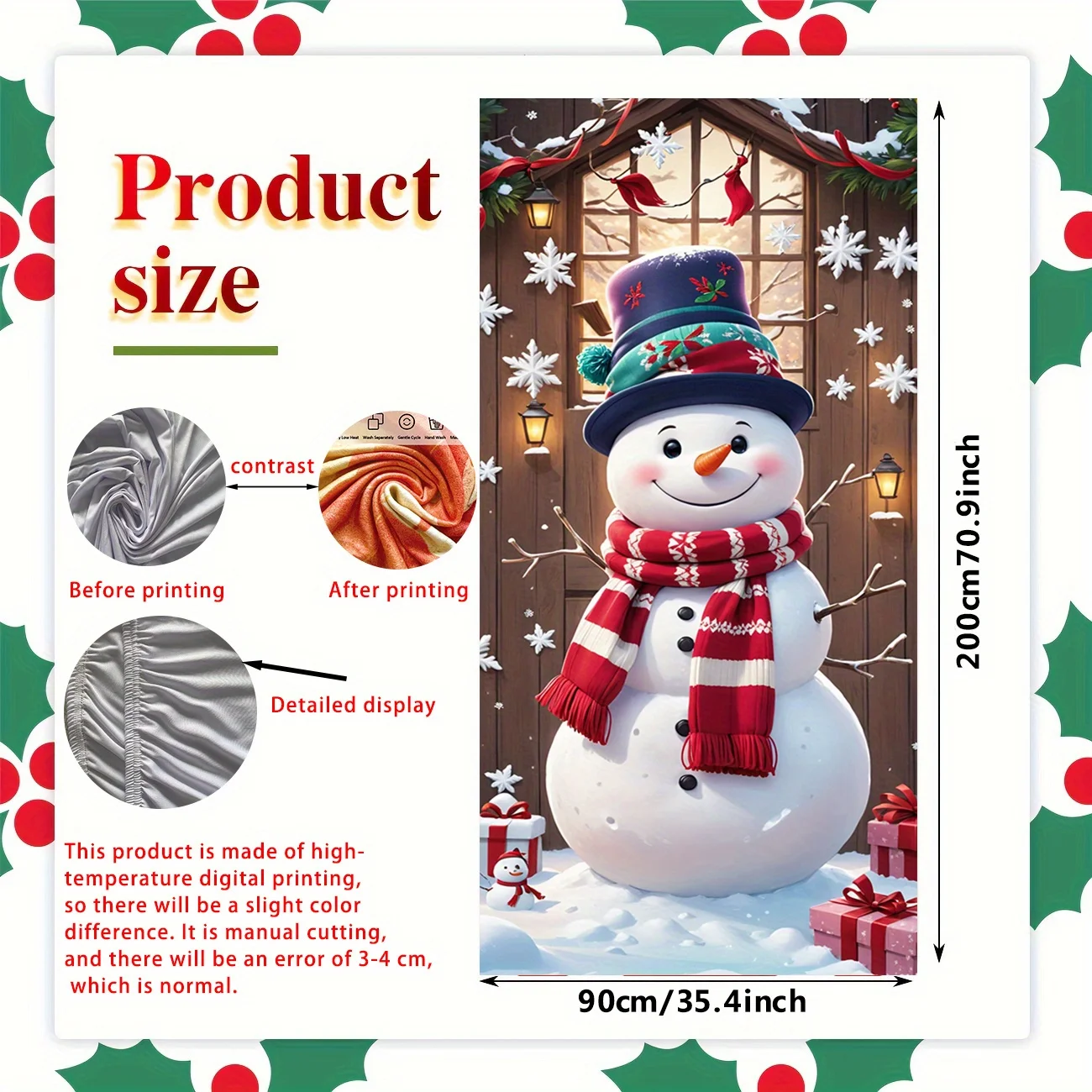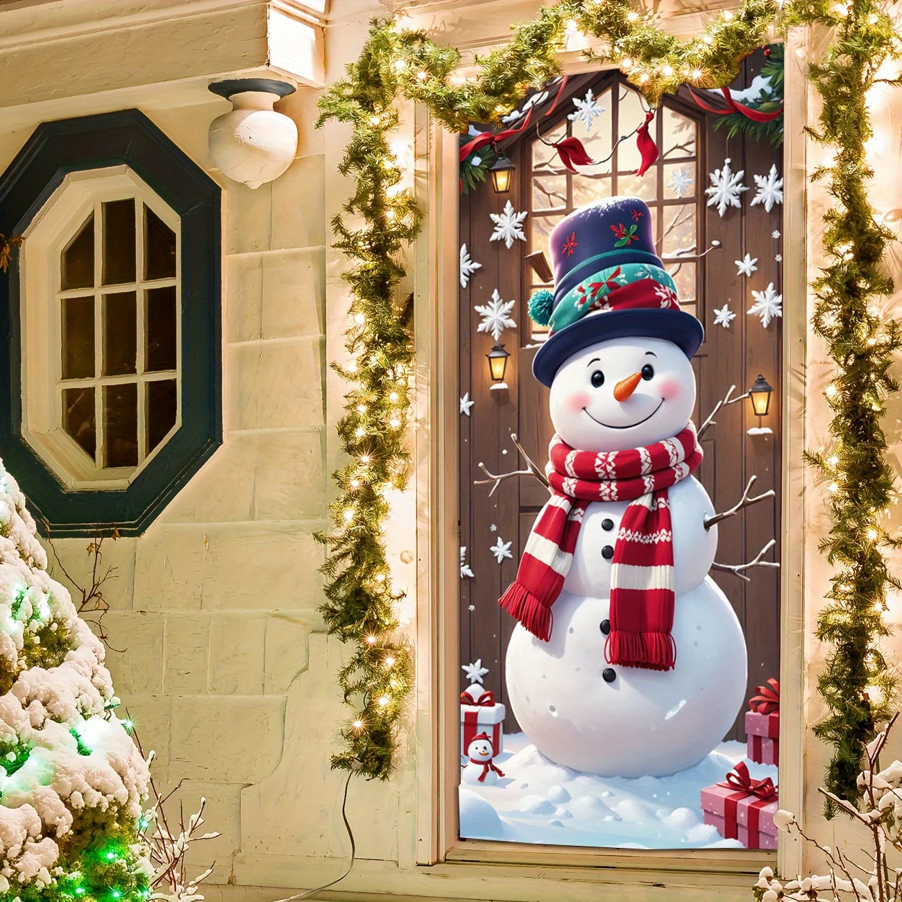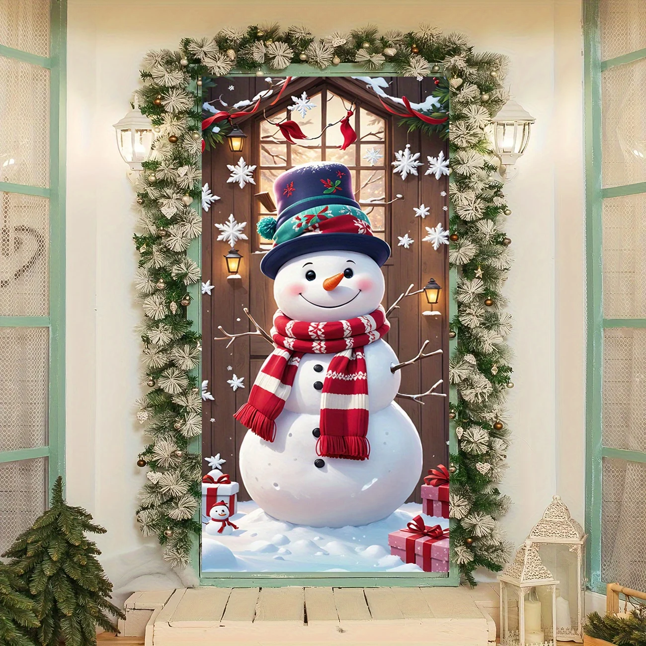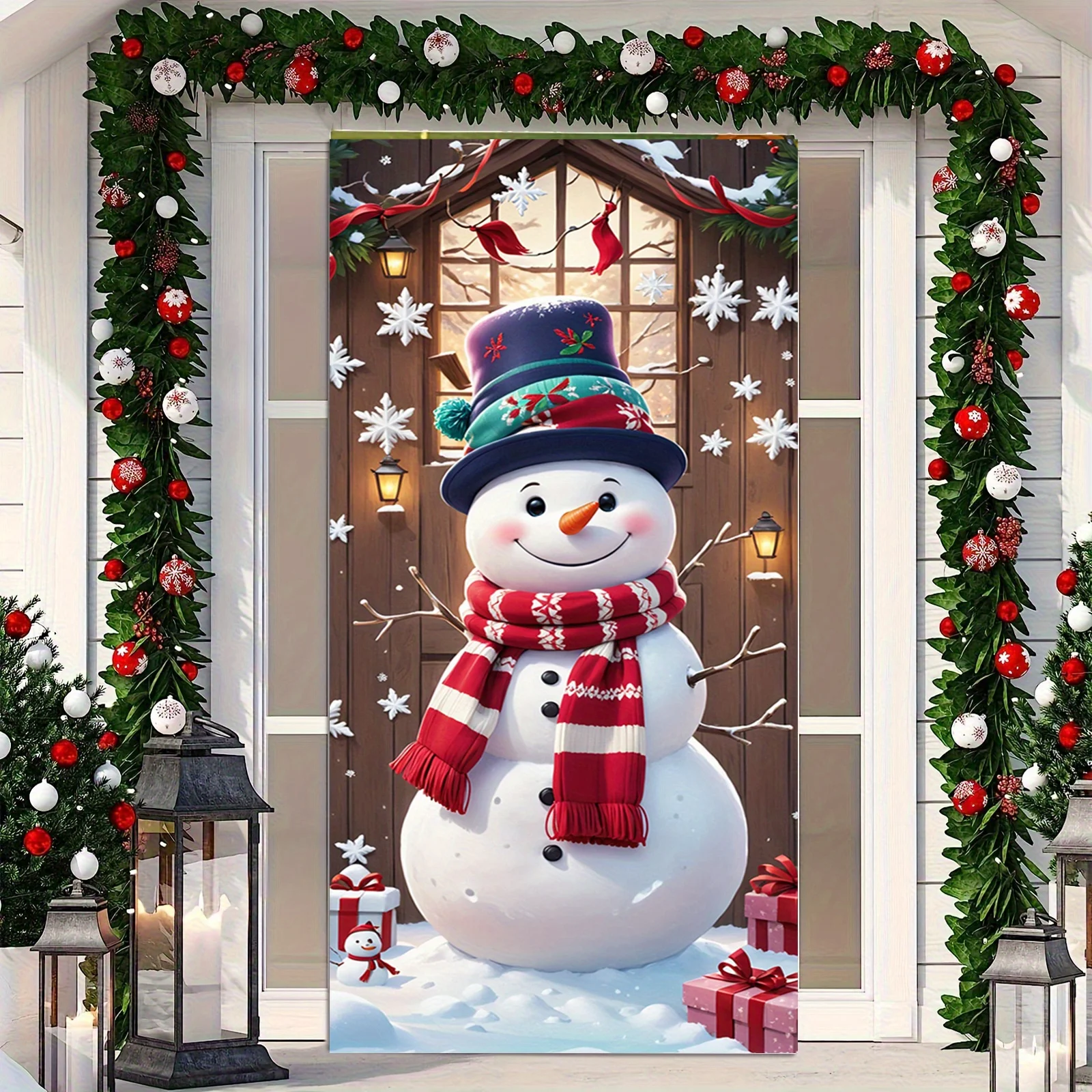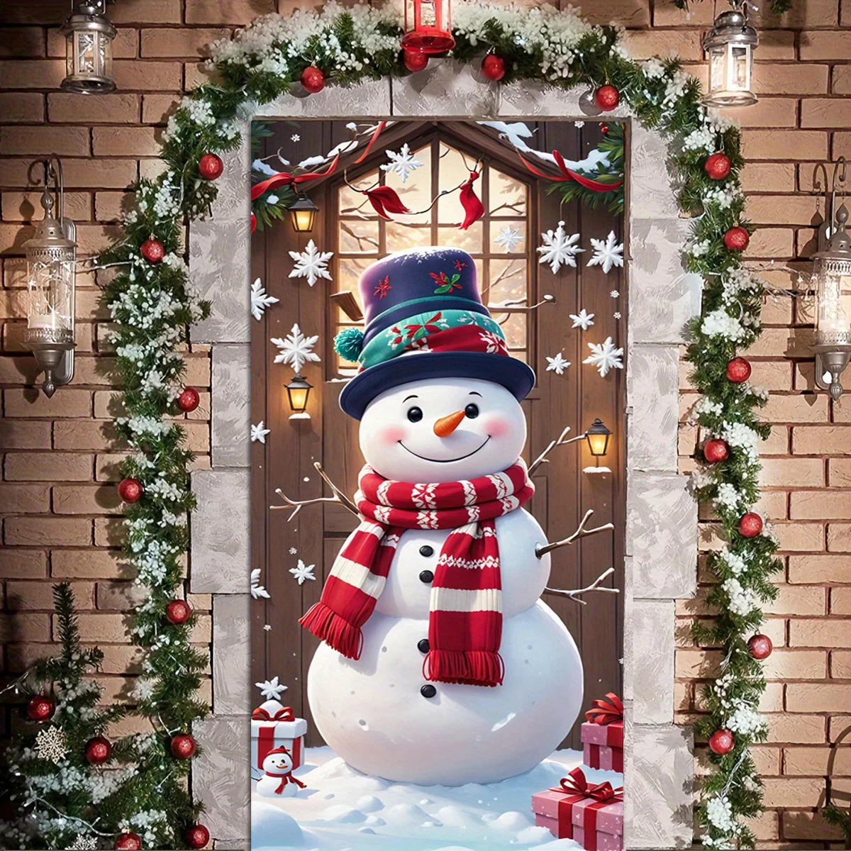 Add festive cheer to your home with this 2D flat Christmas Snowman Door Cover. Featuring a friendly snowman wearing a red scarf and winter hat, surrounded by snowflakes and holly accents, this door cover creates a warm holiday welcome for guests. Perfect for decorating doors at home, offices, or Christmas parties.